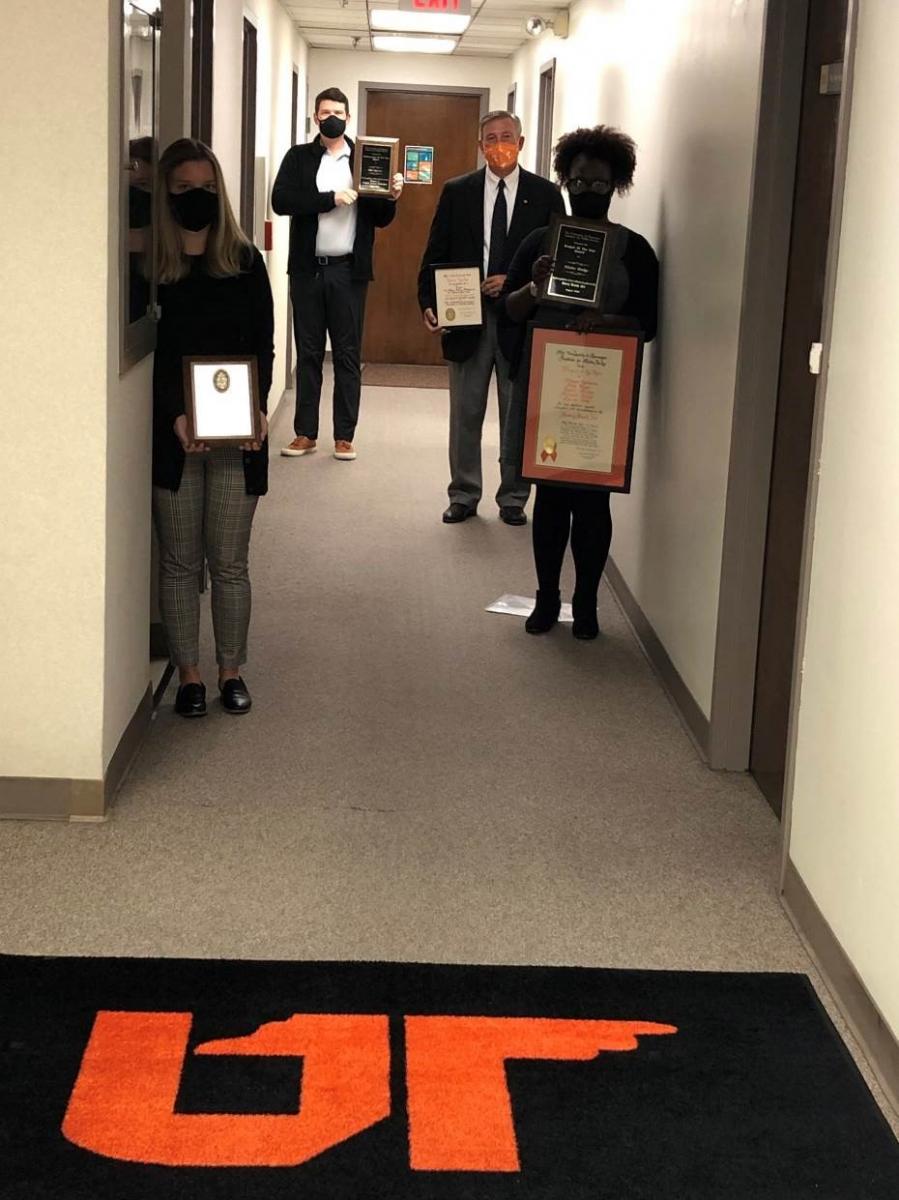 Earlier this month I traveled to the Nashville office to deliver the actual awards earned at the MTAS retreat and the IPS annual conference. You’ll recall these events were virtual. The plaques and framed certifications are real, and I am in the process of delivering them to each office. So, here is a photo of the award winners in the Nashville office – masked and socially distanced holding their awards! Congratulations to Sarah (MTAS Customer Service), Elisha (IPS Project of the Year), Gary (IPS 20 year service award), Abb (IPS Collaboration of the Year), and also to those not pictured from Nashville: Emily (MTAS Trailblazer) and Steve C. (IPS Project of the Year).